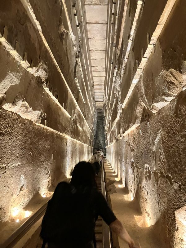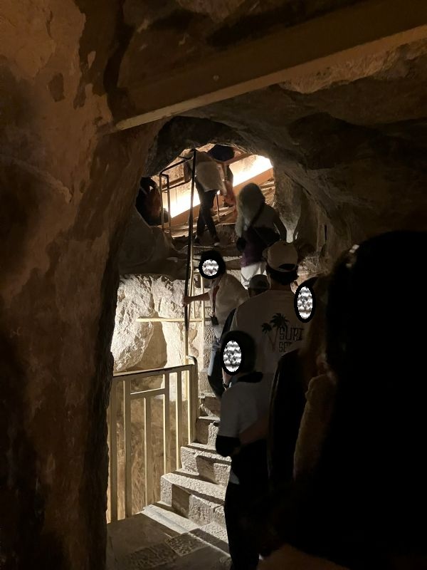 ピラミッド内部は下記写真のようで、非常に細い通路を入る人と出てくる人が互いに譲りながら進んでいく。