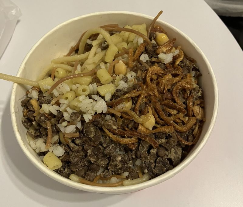 ツアー終了後は、あまり食欲はなかったので、宿近くのコシャリチェーン店でコシャリをテイクアウトし、部屋で食べた。直径約20cmほどの下記写真のコシャリで約160円。胃に優しい味であった。