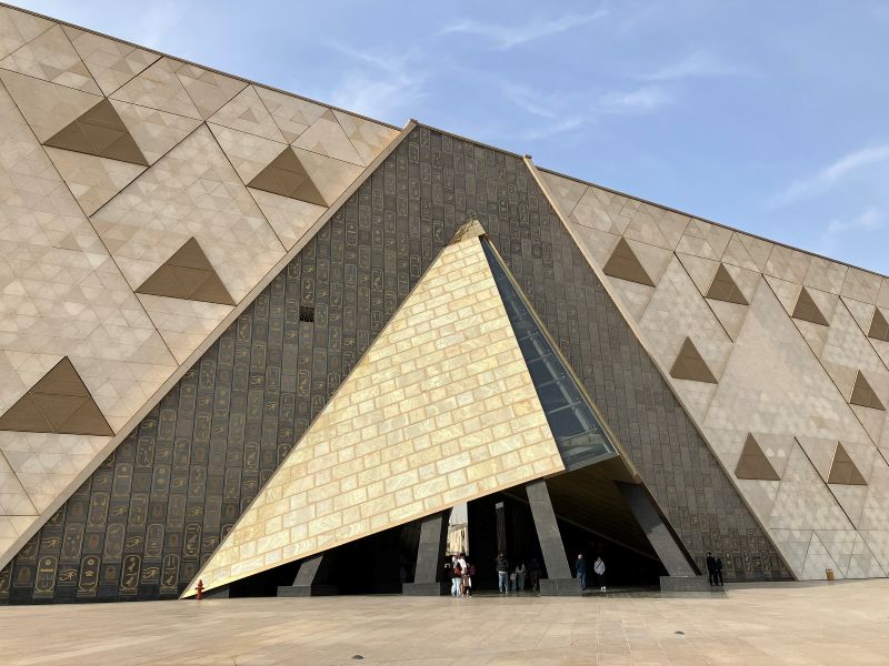 2日目は1日目と別のガイドさんがやってくる事になっていたので、1日目終了時には、集合時間を8:30とすること、MOBACOというコットン衣料品店に行きたいことを伝えていた。果たしてどのくらい伝わっているのであろうか?あまり期待もしていなかったが、結局ガイドさんがやってきたのは9:00頃。その後、本日の行先について共有し、MOBACOについてもグーグルマップで示して提示した。まずは大エジプト博物館へ。ここは今はオンラインでしかチケットを購入できないようになっており、前日夜にガイドさんから「午後入場のチケットをオンライン購入しておくように。」との指示をもらっていた。しかし、我々は午前中に最初に行きたかったので、朝会った後そのことを共有し、結局現地に行ってからオンライン購入した。さすがにオープンしたところの新しい博物館であり、館内も美しく機能的で、かつ非常に多くの展示物が展示されている。