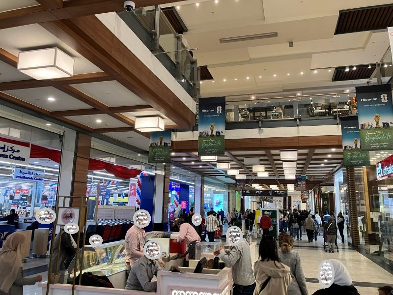 この後、またトラブルである。なんとなく、MOBACO行きを忘れていそうなので、いついくのか聞いてみたら、「それは今回の私のツアーの範囲外なので行かない。」と今頃言い出した。「いや最初から言ってただろう。我々はこのツアーはプライベートだからあなた方の自由だ、と聞いている」「私はそんなことは知らない」などど何度かやり取りしたが、結局グーグルマップで探したのであろうか、宿の比較的近くにあるMOBACOに行ってくれることになった。しかし行ってみたら休業中。自分のグーグルマップで見たら、休業中との情報も明記されている。わかっててあきらめさせるためにここに連れて来たのか?「ここは休業なのでダメだ。」「でも他の店は遠い。」「オールドカイロから直接行けば近かったのになぜここまで来た?」「今から行くなら別料金が必要だ。」「幾らだ?」「50USDだ。」「そんな金額は払えない。じゃあもういい。宿に戻ってくれ。」というような会話が続いたあと、距離は少し遠いが、郊外にあって渋滞せずにいけそうなMOBACOを見つけてくれたのであろう。「わかった、MOBACOに行く、追加料金は不要。」ということで少し険悪な雰囲気になりながらも、郊外のショッピングモール(下写真)にあるMOBACOに連れて行ってくれた。
