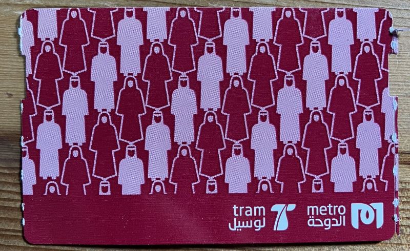 1時間の快適なフライトを終えたあとは、カタールに入国し、まずはメトロの一日券(下写真)を買って市内中心部へ向かった。メトロの1日券は250円程度と非常に安かったので、市内中心部への往復2回乗車のみの予定であったがこれを購入した。