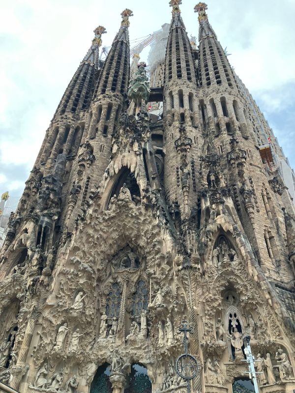 そこから1km弱のサグラダファミリアへ徒歩で向かった。私は今回の旅行の目的地に入れるまで、サグラダファミリアにあまり関心がなかったが、近づくにつれその壮大さに圧倒され始めていた。まだ完成していないとは言え、圧倒的な存在感とまた細部にわたる緻密な彫刻が本当に素晴らしい。