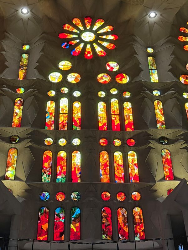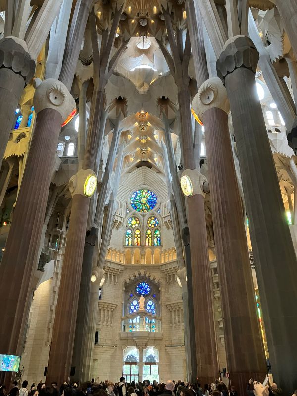 そして天気は曇りであったものの内部に入るとそのステンドグラスの美しさと、これまで見たことの無い森を象徴した柱の美しさにも圧倒される。