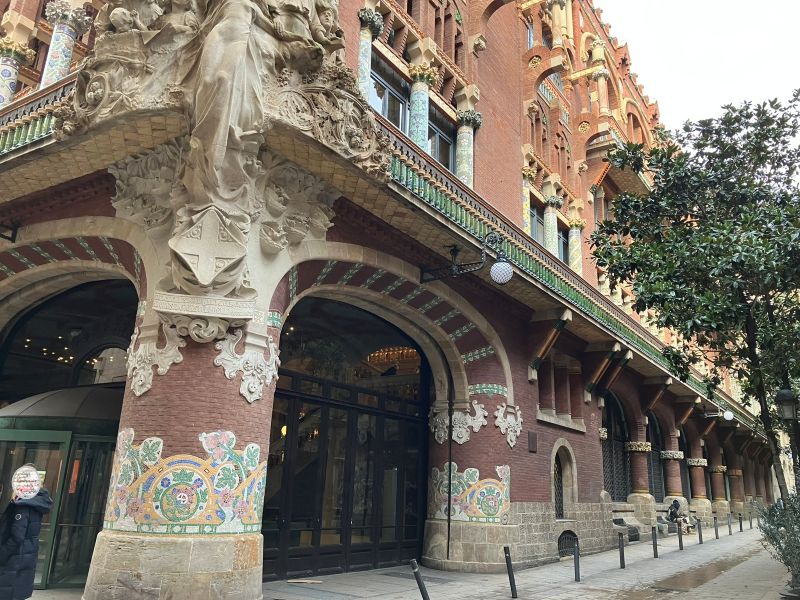 カタルーニャ音楽堂(下写真)を外から見学しながらの散策であったが、1時間程度のんびりと楽しむことができた。