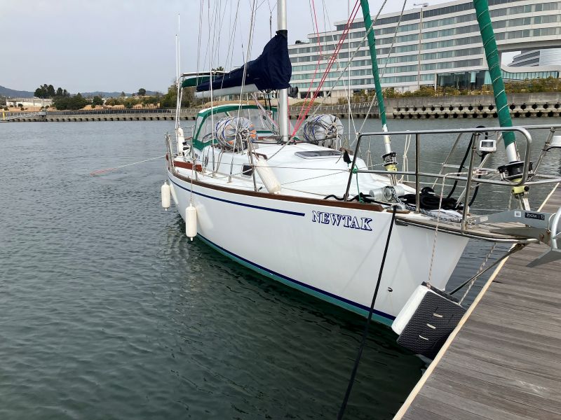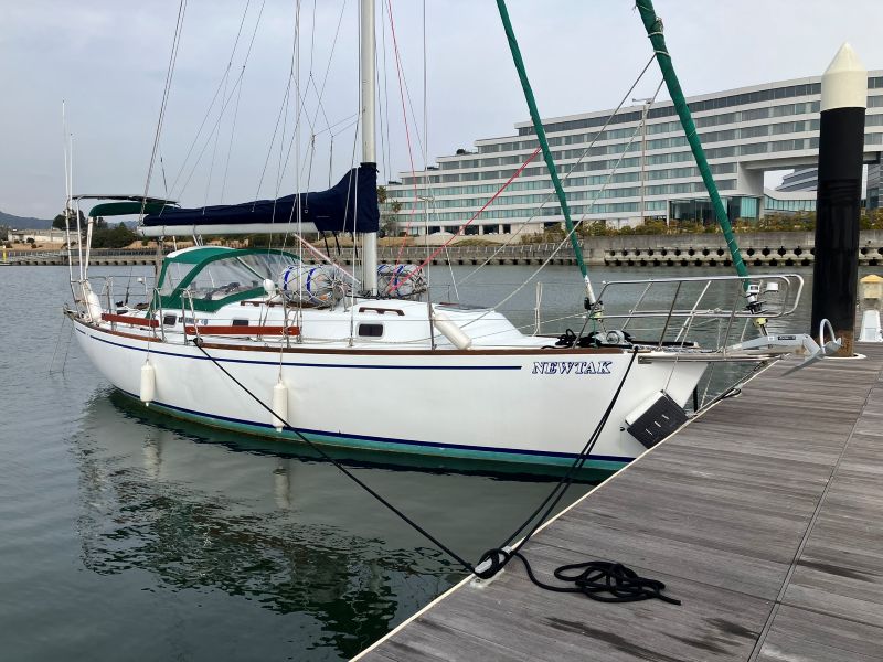 スターンアンカーの準備を一旦終え、次は槍付け練習である。いきなり岸壁に行くのは無謀だと考え、まずはマリーナ内(水深5m程度)の浮き桟橋(ビジター桟橋)でチャレンジしてみることとした。もしかしたらマリーナ内はアンカリング禁止だったかもしれないが、ほとんど往来の無い平日だったのでそこは大目に見て頂けると助かる。やってみて初めて分かるのだが、まずは桟橋までの距離がわからない。最初は桟橋から艇長の4倍程度の位置にアンカーを落としたつもりだったが、ロープを繰り出しながらヨットを前方に進めていってもなかなか桟橋に到着しない。結局ロープが足りなくなってやり直すこととなった。スターンにはウインドラスは無いので人力での引き上げになるが、これも初めてやってみるとわかるのだが、スターンパルピットなど邪魔物があって結構大変な作業である。ただ、アルミ製のフォートレスアンカーは比較的軽く、最後のアンカー引き上げ時にはこれがメリットになる(泥に刺さったアンカーを抜くときが最も力が必要だった)。