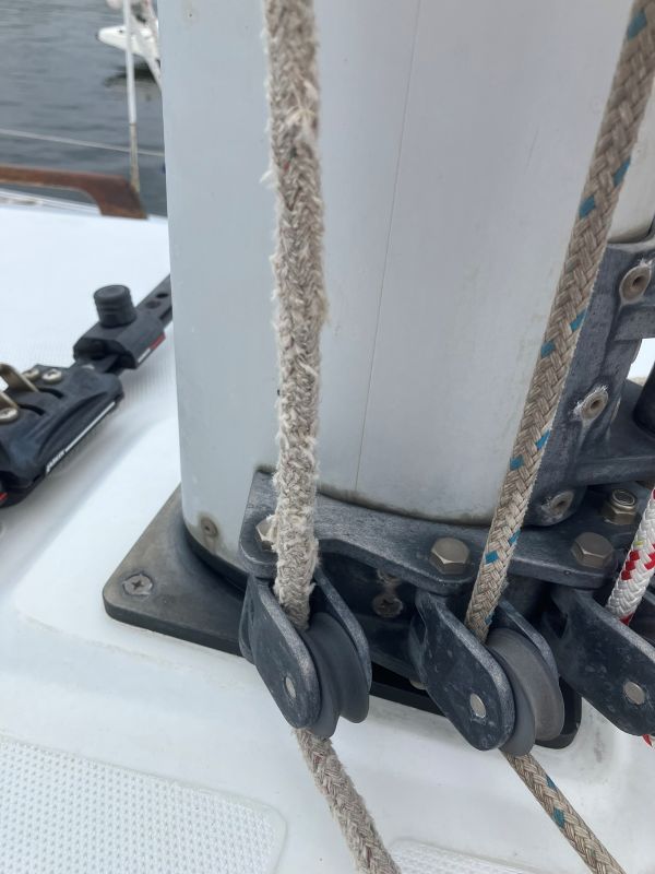新しいシートになると見た目も気持ちいいし、セーリング時もスムーズに動くようになった気がする。今セットしてあるアンカー用双綱は10mほどしかないが、今回取り外したシートは18m程度あったので、交換して双綱用に使おうと思う。