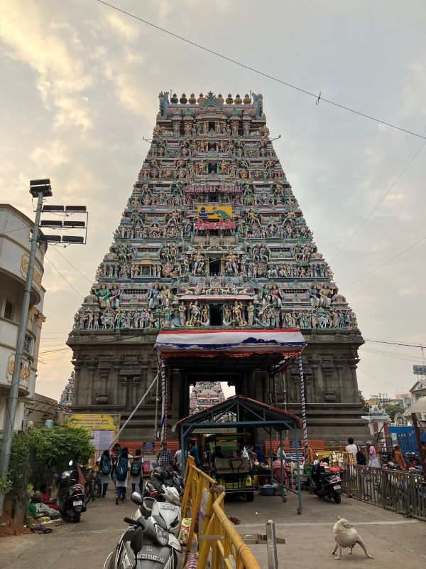 1週間滞在した最終日午後には、チェンナイの観光スポットに連れて行って頂いた。街に行くと、また郊外とは全く違った雰囲気になる。下写真は、カバレーシュヴァラル寺院と寺院周り。