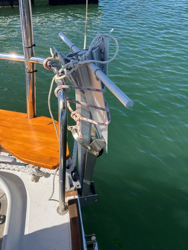槍付けしたい位置より少し風上側に向かい、スターンに居てアンカーが効いたことを確認後、スターンのクリートからアンカーロープを外して、あらかじめバウまで運んでおいたアンカーロープのところまで移動。風に流されながらロープを繰り出し、桟橋とバウの距離を調整してロープをバウ側のクリートに固定。その後ボートフック(ワンラインドッキング用ツールの自作 | Exciting Life Beyond the Turning Point)を使って、桟橋のクリートを捉えることができた。いろいろやることが多く大変だが、確かにこれならバウと桟橋の距離調整がやりやすいことがわかった。