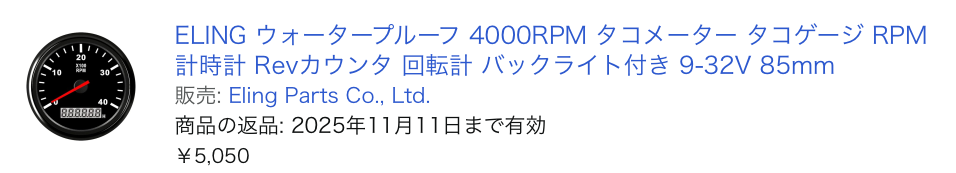早速アマゾンでタコメータを発注した。発注したものは下記である。