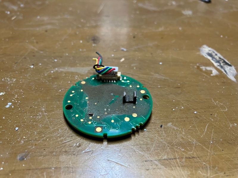 そしてこの壁面が下写真電子基盤の2つの突起部の間を通ることによって回転数を計測しているようである。
